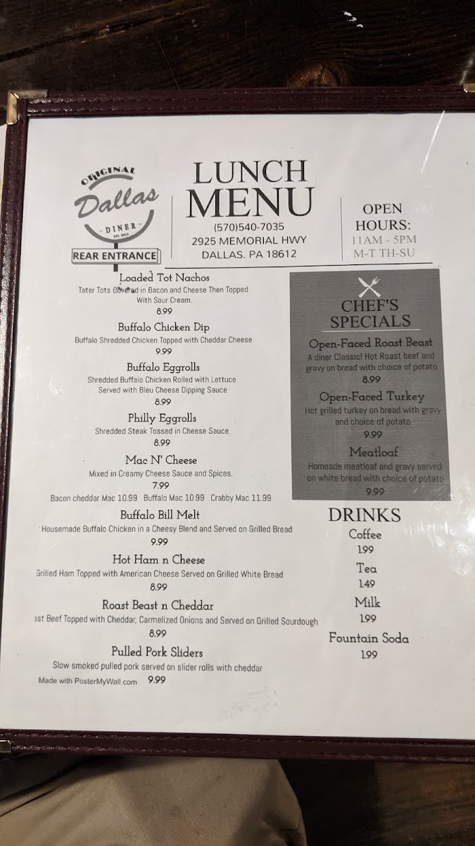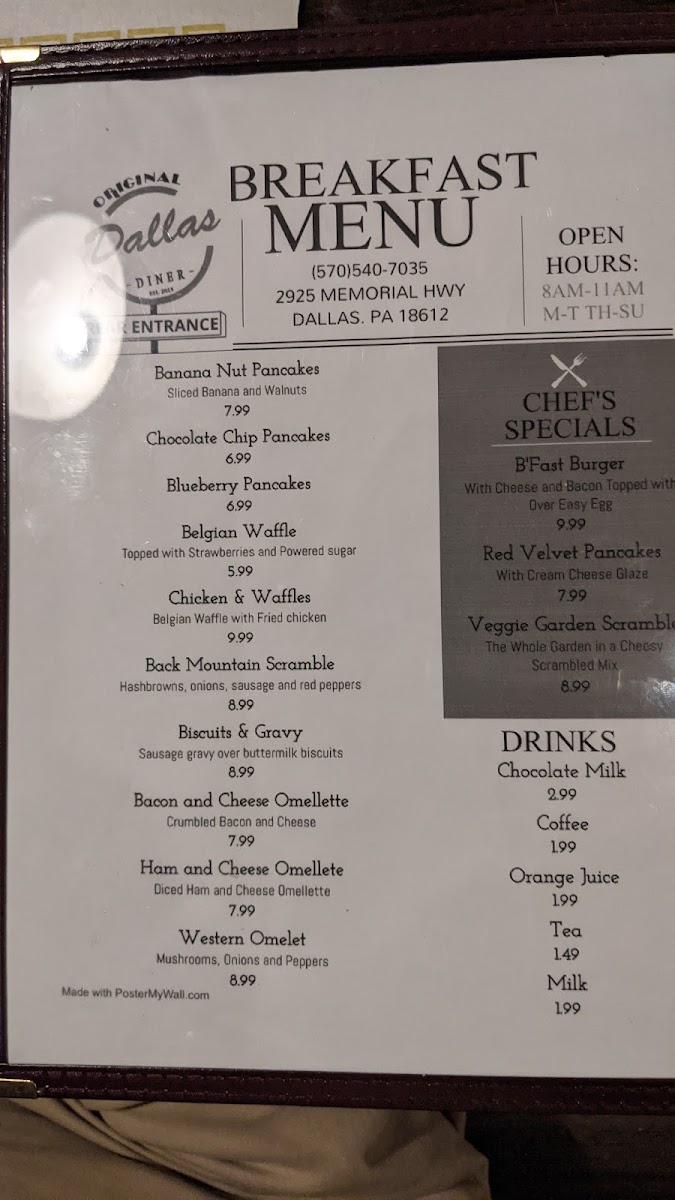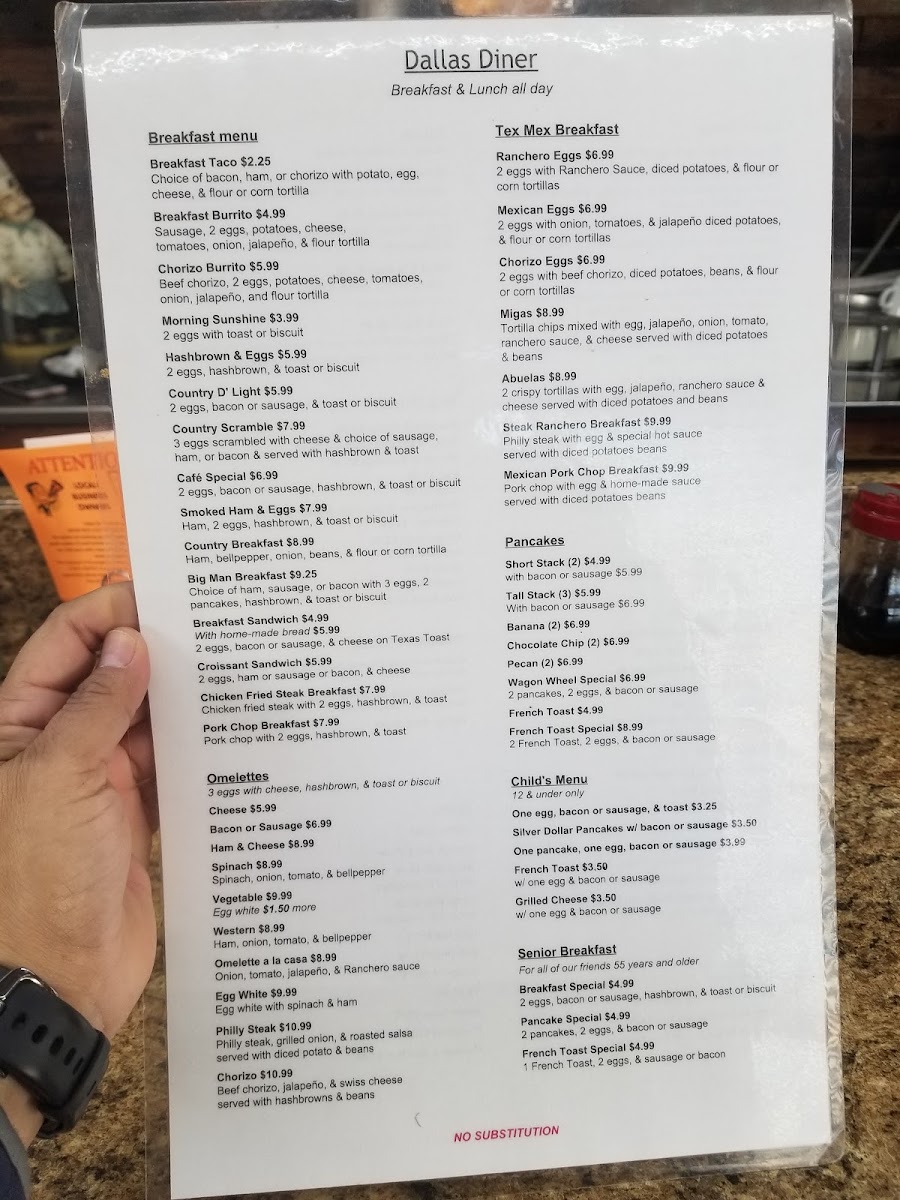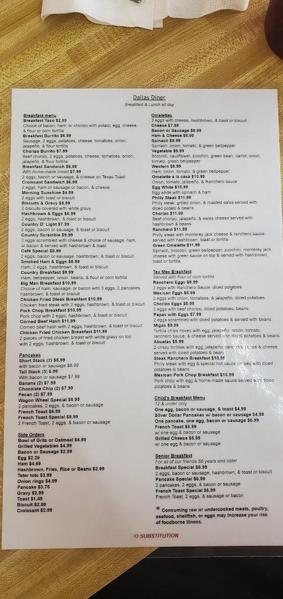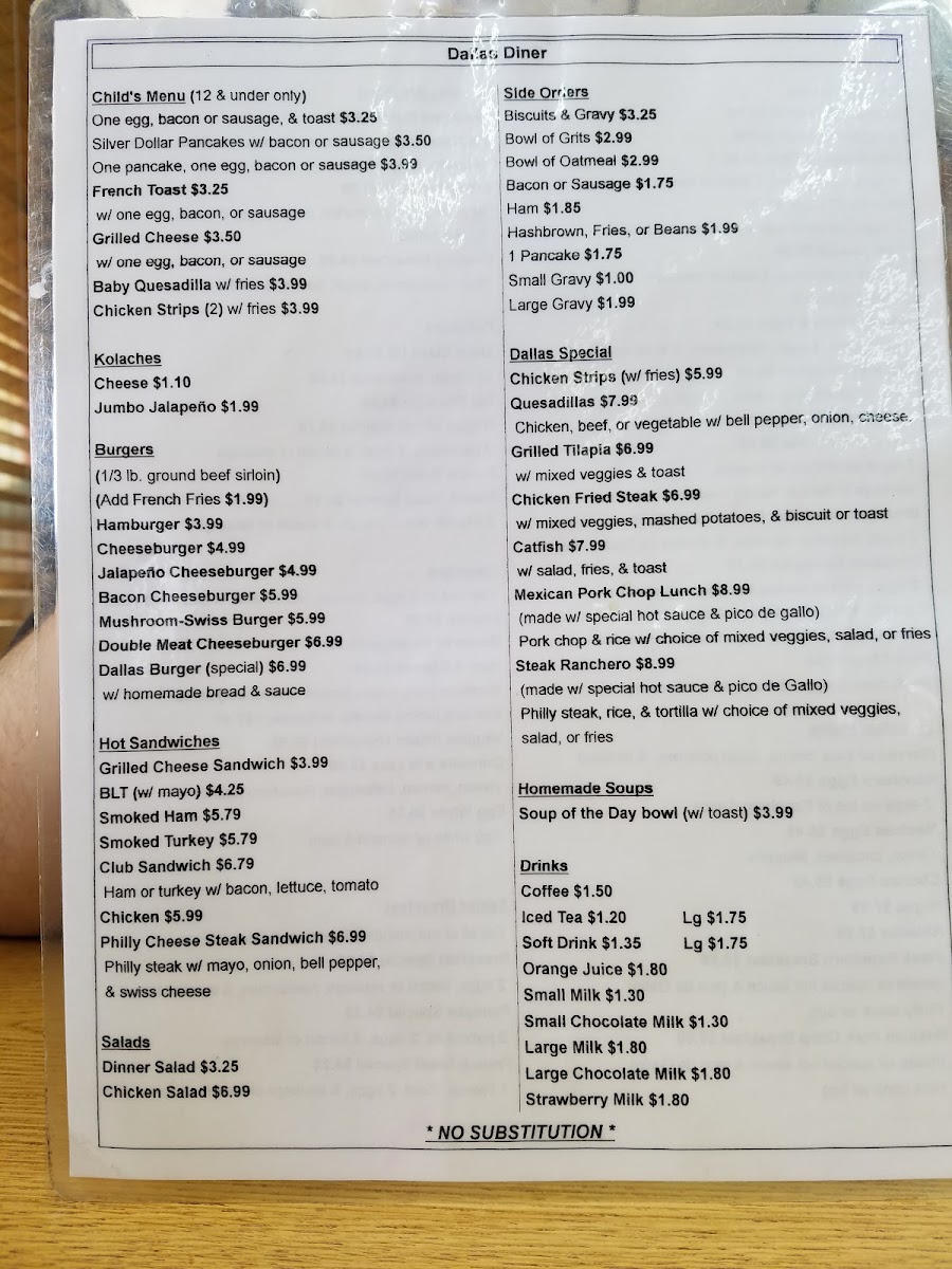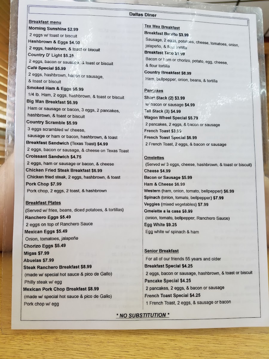 Don’t worry, parents! Dallas Diner also caters to younger appetites with a thoughtfully crafted Child's Breakfast Menu featuring delicious options like Silver Dollar Pancakes with a side of bacon or sausage for only $3.99. There's something for everyone at this diner, all at prices that keep your wallet happy.