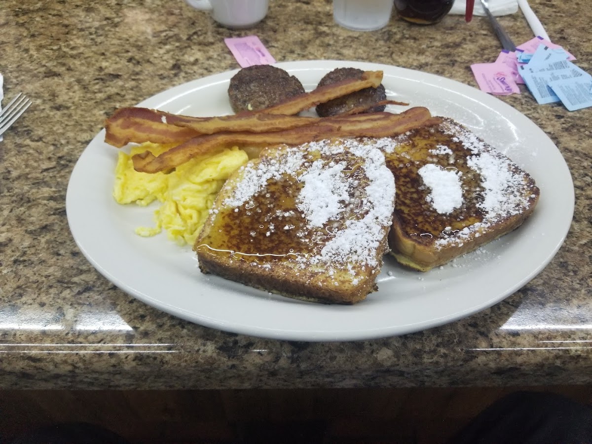 As for the menu, food enthusiasts will be enamored with signature dishes that showcase traditional breakfast items made with hearty portions and quality ingredients. Start your day off right with the Wagon Wheel Special—a delightful feast of two fluffy pancakes, two eggs, and your choice of crispy bacon or sausage, all for just $6.99. Or perhaps you're in the mood for something sweet? Dive into a stack of Banana Pancakes, where each bite is a lush combination of rich batter complemented by the sweetness of ripe bananas, all for an unbeatable price. For those who fancy a classic twist, the French Toast Special offers an indulgent pairing of two golden toasty slices, two eggs, and the savory touch of sausage or bacon, priced at just $8.99!